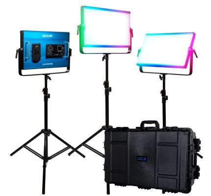 Das Dracast DRX32000RGB LED-Beleuchtungsset umfasst drei Lichter inklusive Lichtstative, Flügeltore und einen Schutzkoffer für den problemlosen Transport.