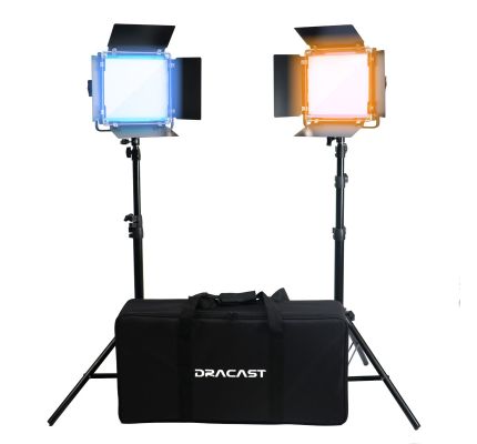Das Dracast DRX2500BNS LED-Beleuchtungsset umfasst zwei Lichter inklusive Lichtstative, Flügeltore und eine Tasche für den problemlosen Transport.
