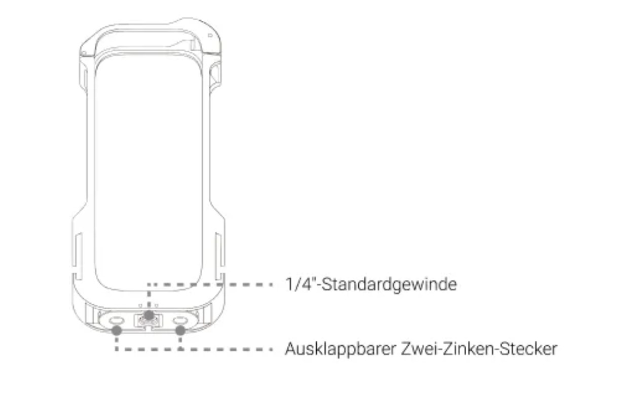 Selfie-Stick befestigen, indem Sie das Standard 1/4" Gewinde oder den ausklappbaren