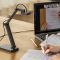 Ändern Sie die Höhe oder den Winkel der Kamera frei, um die Materialien, die Sie teilen möchten, ideal aufzunehmen. Oder stellen Sie den Kopf der Kamera aufwärts und verwenden Sie sie als Webcam.