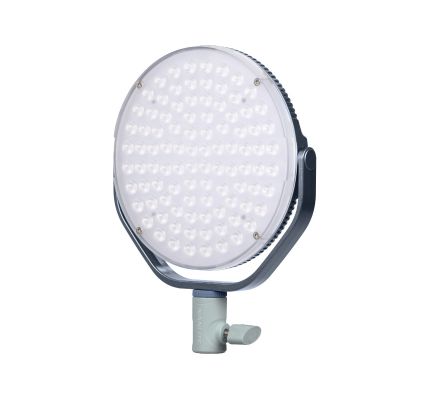 Runde, multifunktionale Full-Color-Flächenleuchte mit modernem Design, leicht und kompakt, mit flachem Kunststoffgehäuse und Montagebügel. Im Gegensatz zu typischen rechteckigen Flächenleuchten erzeugt die runde Form natürliche Lichtreflexe in den Augen für Porträts, Interviews und Social-Media-Aktivitäten.