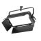 Die Leuchte besitzt PowerCON TRUE1 AC Ein- und Ausgang für sichere Studiostromverteilung sowie einen 5V USB-A Ausgang, z. B. für drahtlose DMX-Empfänger. Im Lieferumfang enthalten sind 4-flügelige Torblenden und ein Bügel. Optional ist ein 40° Wabengitter (LA-G100) erhältlich.